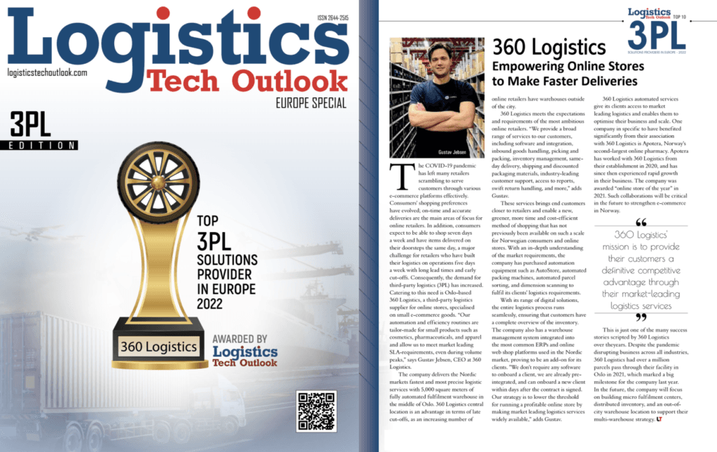 360 Logistics automated services give its clients access to market leading logistics and enables them to optimize their business and scale. One company in specific to have benefited significantly from their association with 360 Logistics is Apotera, Norway’s second-largest online pharmacy. Apotera has worked with 360 Logistics from their establishment in 2020, and has since then experienced rapid growth in their business. The company was awarded “Online store of the year” in 2021. Such collaborations will be critical in the future to strengthen e-commerce in Norway.
