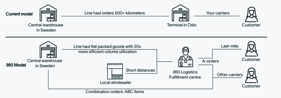 360s Multi-Warehouse-modell sammenlignet tradisjonell sentrallagermodell i Sverige